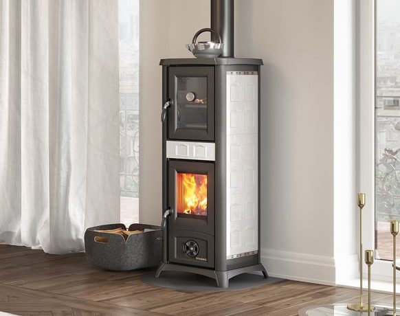 Poêle à bois avec four pour cuisiner Caractéristiques : • Tiroir pour cendres extractible • Revêtement intérieur du foyer en fonte • Portes, élément supérieur, bâti et châssis en fonte émaillée • Air primaire et secondaire réglables • Système de postcombustion (basses émissions) • Four en acier émaillé porcelainé de 19 l • Vitre céramique … Lire la suite de GEMMA FORNO 5.0